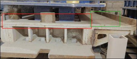 A: The extra platform is to reduce material leakage from the material cart. We will balance the weight according to the size and structure of the mold frame, trying to keep the center of gravity close to the center of the forming area.
